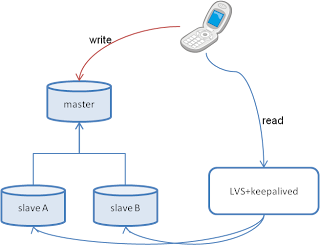 下図のように、master1台←slave2台がLVS+keepalivedで負荷分散構成されているDBがあるとします。